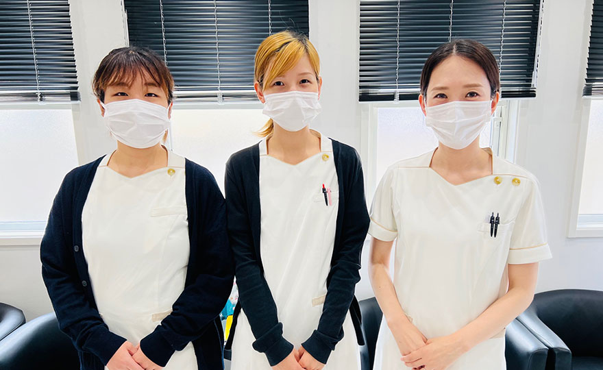 歯科助手 受付に従事している3人です。患者さんには笑顔で!をモットーに従事しております。